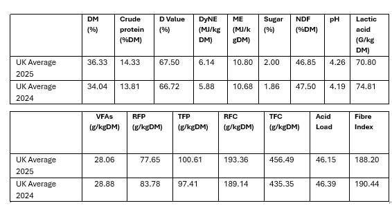 "These weather differences have translated directly into grass silage quality and quantity. Dry matter contents ranged from 33.6% in Scotland to over 43% in the East Midlands, reflecting both rainfall levels and the weather in the wilting windows."